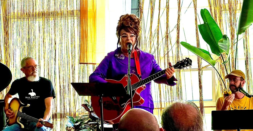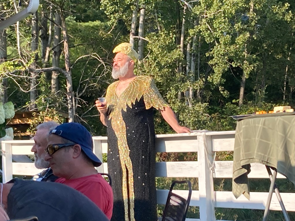 Featured at the deck party was the Bearapalooza Reunion Jam. In 2002 Freddy Freeman brought together bear-identified musicians and performers for the first time for what became the first and best-known group of bear music. The late Martin Foster Swinger, considered the founder of bear music, was honored for his contributions. He always regaled his audiences with his performance of the children’s song “Uncle Walter Goes Dancing with Bears.” Bearapalooza veterans Don Harvey, Max Christopher (my bunkmate), Reverend Yolanda [https://yolanda.net], and Jay and Freddy Freeman played at jam session. The gathering was capped off with Reverend Yolanda’s Old Time Gospel Brunch.