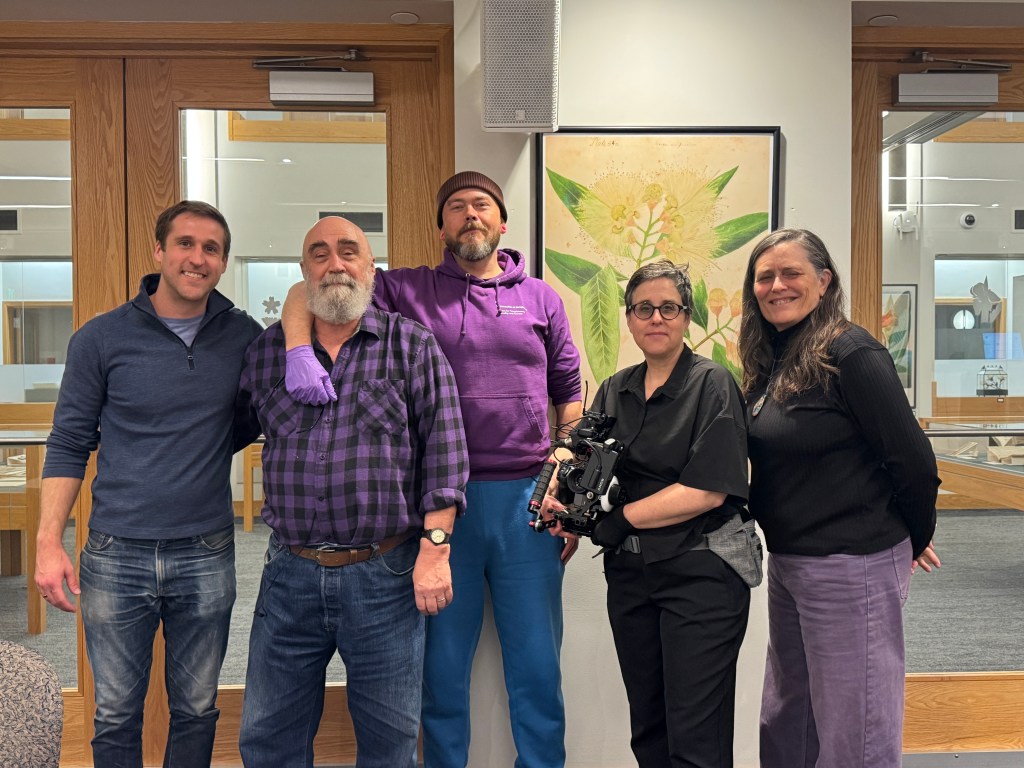 Nick and Les cataloging BHP archival materials, Andy shooting for his documentary on beast.